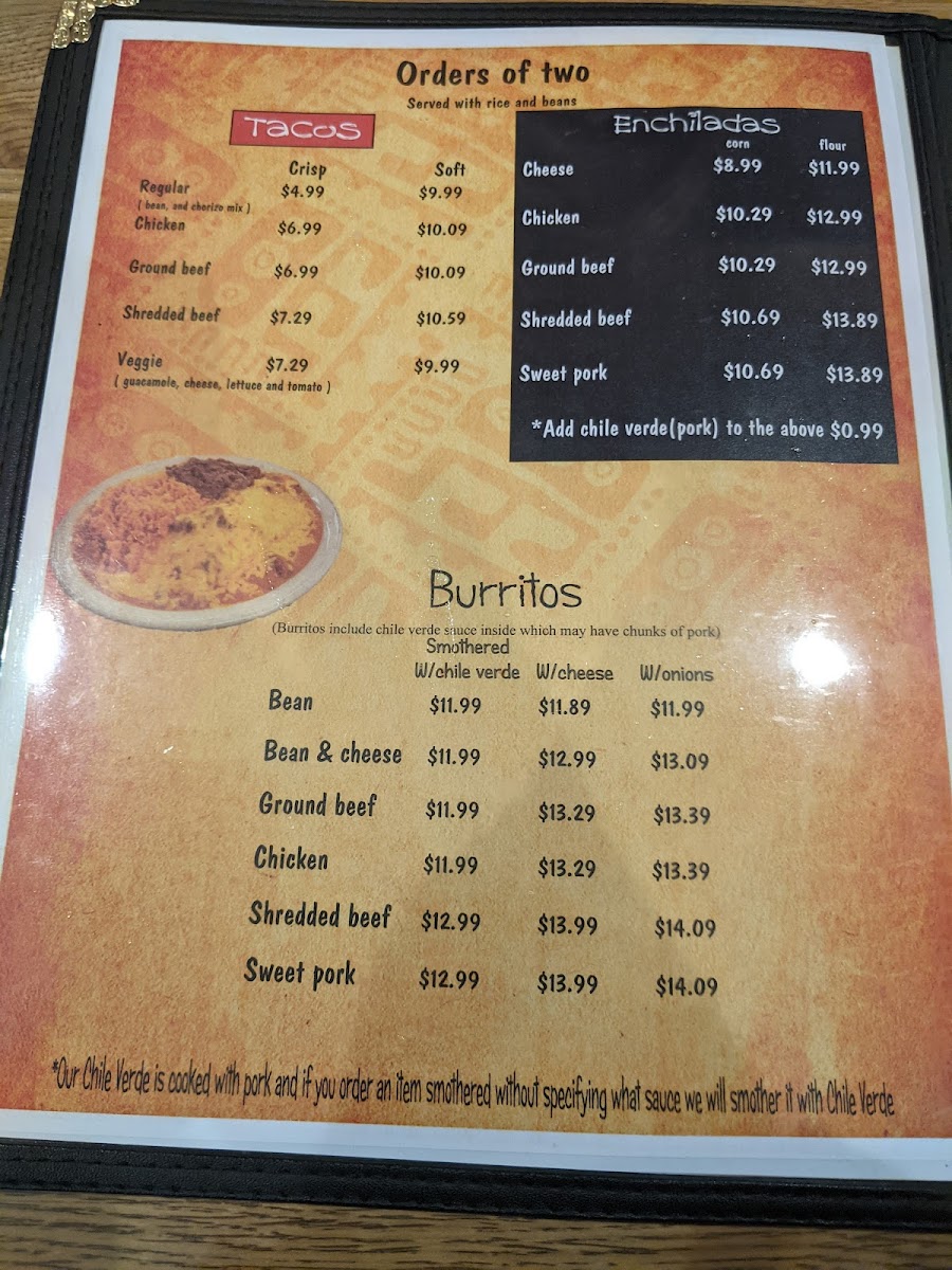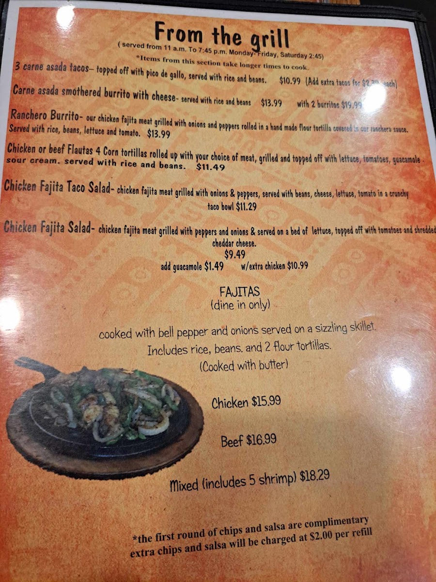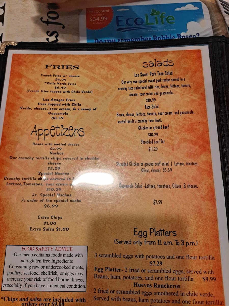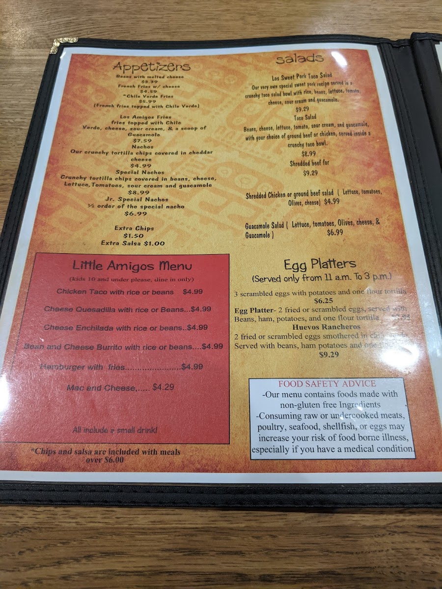 Los Amigos Mexican Restaurant - Ephraim Menu